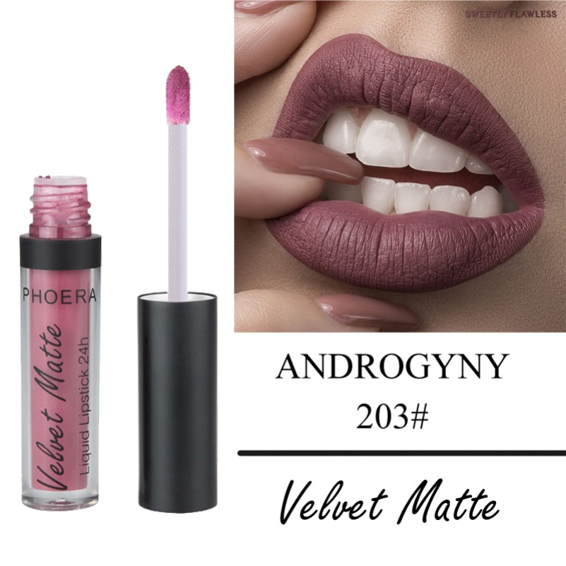 Phoera Long lasting Velvet Matte Liquid Lipstick makes your lips feel luxurious and velvety, Lasts all day with minimal touch-ups, even through meals. Richly pigmented, French vanilla-infused formula glides on as a liquid and dries down to a luxurious, velvety matte finish that lasts for hours and hours.